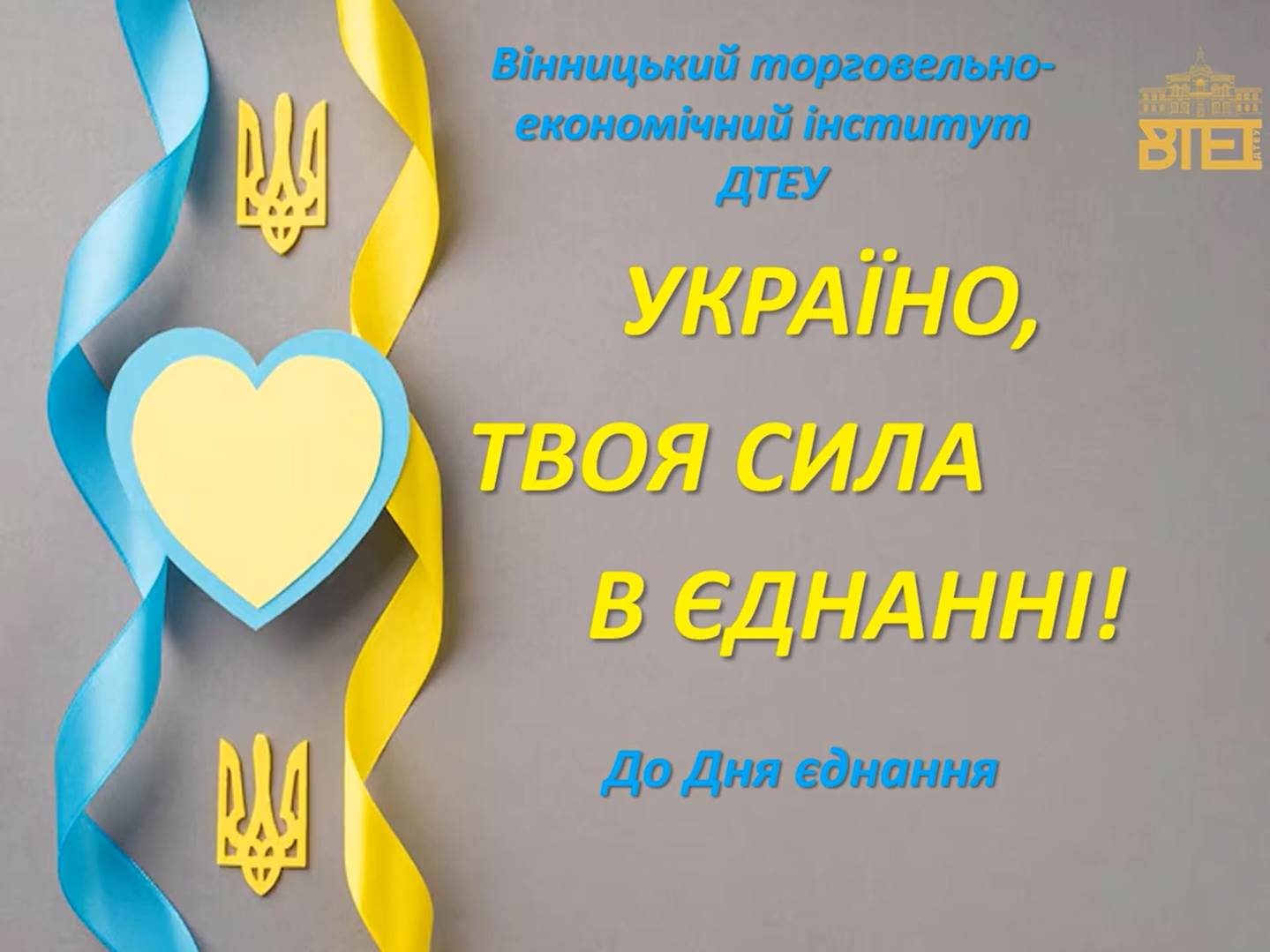 День єднання в Україні щороку відзначається 16 лютого. Ця дата стала важливою для країни з 2022 року. Свято впроваджено згідно з Указом Президента України «Про невідкладні заходи щодо консолідації українського суспільства» від 14 лютого 2022 року. Відтоді День єднання набув символічного значення для консолідації суспільства та підтримки патріотичного духу. Цей день покликаний символізувати єдність українців та їхню згуртованість перед викликами сучасності.