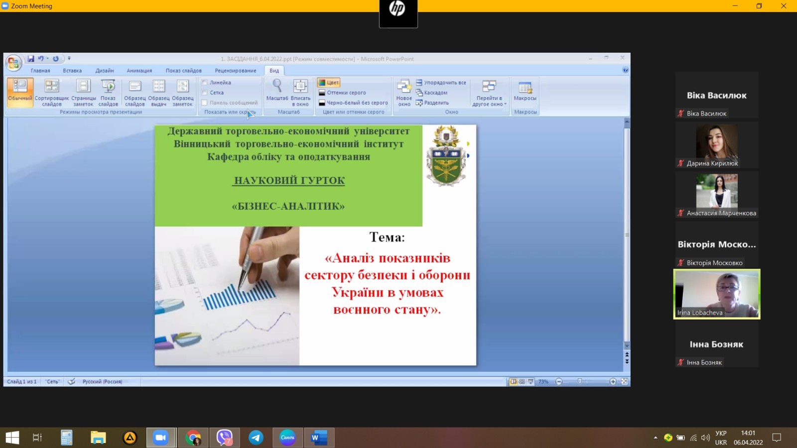 6 квітня 2022 року на базі кафедри обліку та оподаткування Вінницького торговельно-економічного інституту ДТЕУ відбулося відкрите засідання наукового гуртка «Бізнес-аналітик» на тему: «Аналіз показників сектору безпеки і оборони України в умовах воєнного стану».