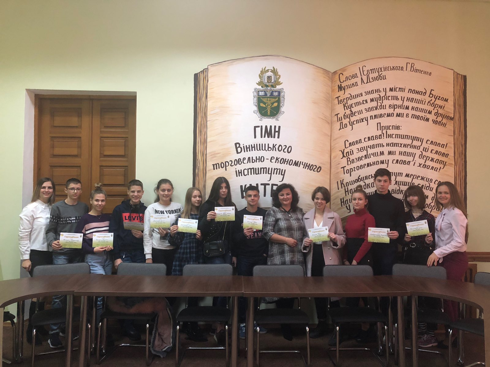 З 28 жовтня по 30 жовтня 2019 року у ВТЕІ КНТЕУ було проведено ШКОЛУ МОЛОДОГО ЛІДЕРА. До роботи школи долучилися 15 школярів 9-11 класів м. Вінниці та Вінницького району, в саме: школи 3, 8, 18, 20, 23, 27, 30, 31 Вінницький технічний ліцей та Стрижавський ліцей. Тренерами виступили викладачі кафедри менеджменту та адміністрування Махначова Н.М., Іванченко Г.В., Семенюк І.Ю.
