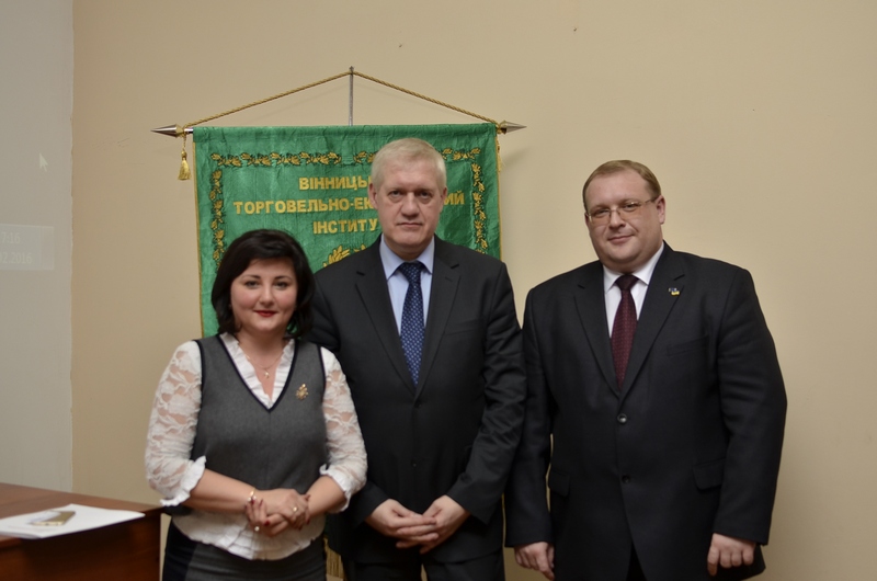 Студенти та викладачі ВТЕІ КНТЕУ сьогодні мали змогу поспілкуватись із начальником Управління міжнародного співробітництва Вінницької ОДА В.М.Мережком та Генеральним Консулом Республіки Польща у м. Вінниця паном Томашом Олейнічаком. Пан Генеральний Консул поінформував про сучасний старн українсько-польських відносин та заявив про всебічну та стійку підтримку України з боку польського народу, а Володимир Мережко презентував Вінницьку область як ефективного гравця на міжнародній арені. Найбільше учасників дискусії цікавили питання безвізового режиму та можливості і напрямки працевлаштування молоді.