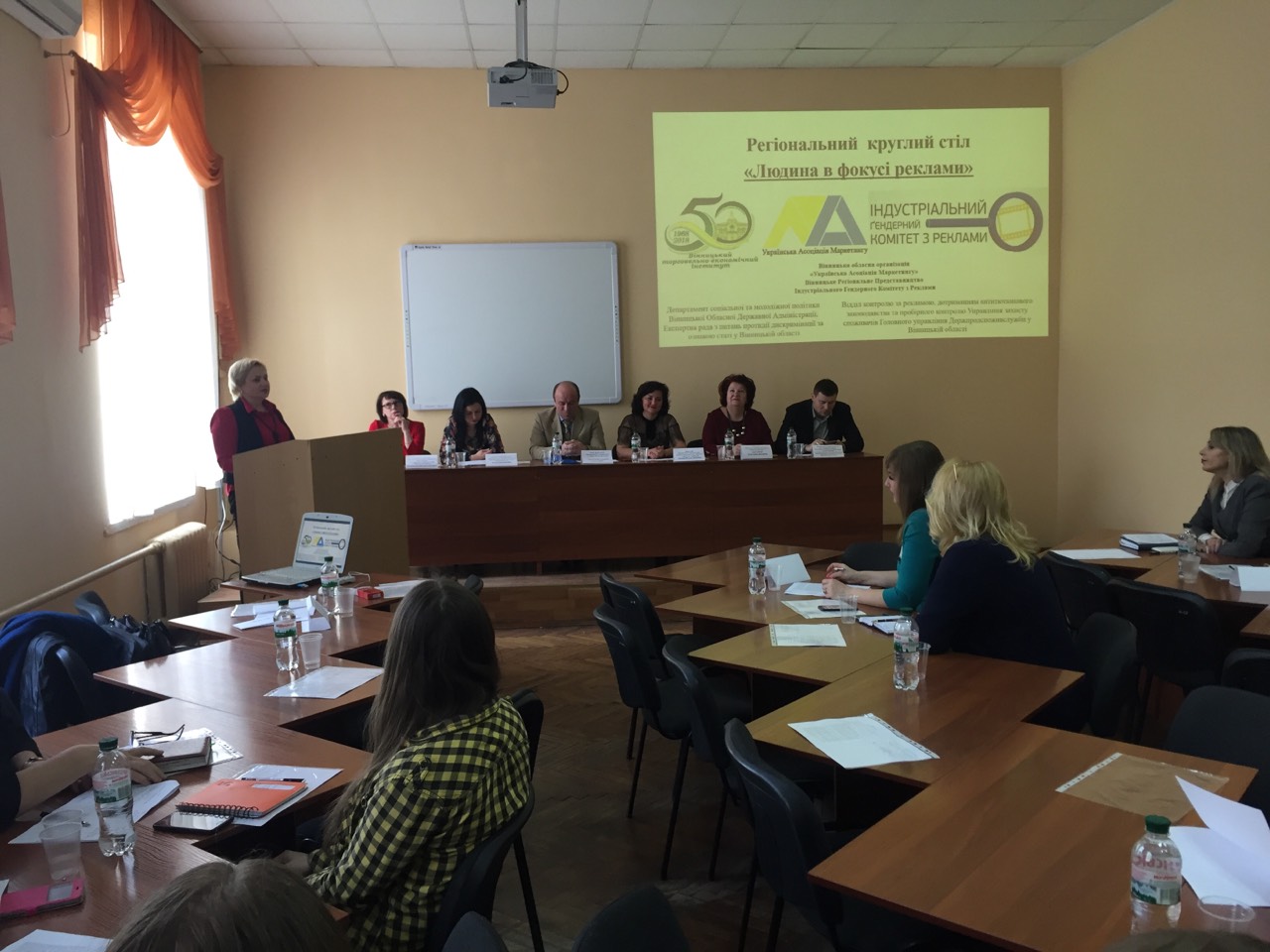 25 квітня 2018 року на базі Вінницького торговельно-економічного інституту КНТЕУ за участю кафедри маркетингу та реклами було проведено регіональний круглий стіл на тему «Людина в фокусі реклами».