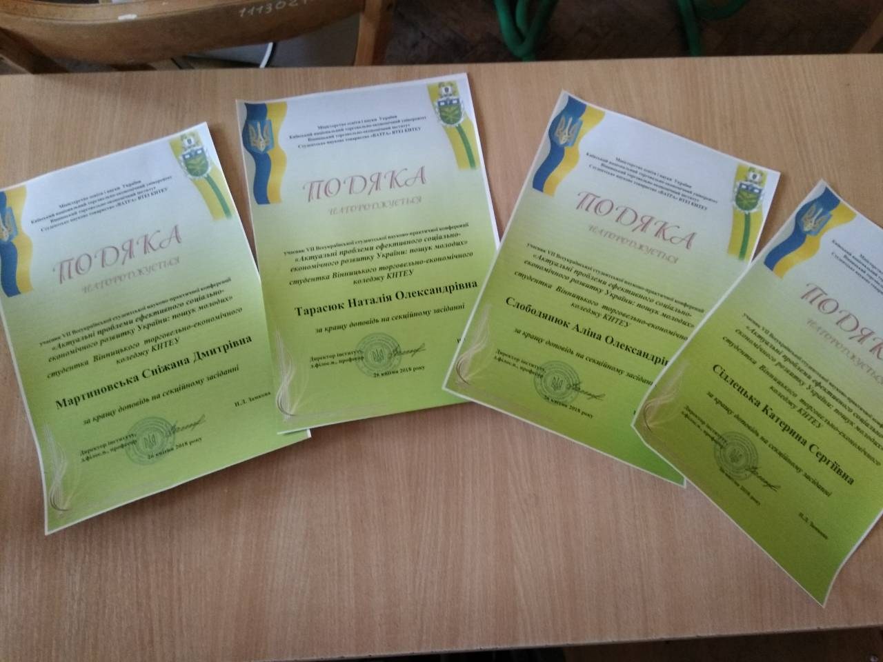 26 квітня 2018 року відбулося секційне засідання учасників VІІ Всеукраїнської студентської науково-практичної конференції «Актуальні проблеми ефективного соціально-економічного розвитку України: пошук молодих» (керівник секції: ст. викладач Середницька Л.П., секретар – здобувач вищої освіти Козак Діана Віталіївна.