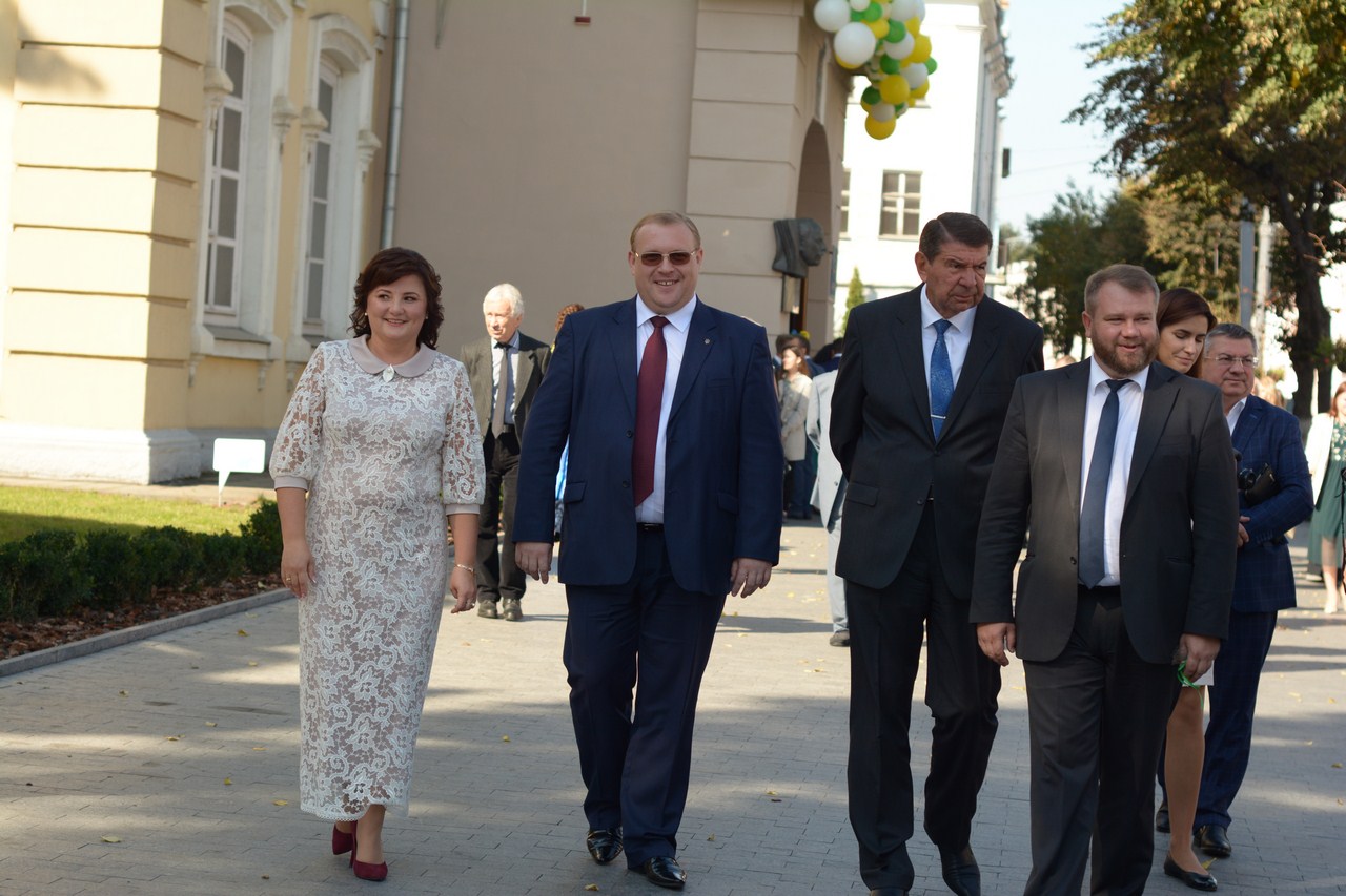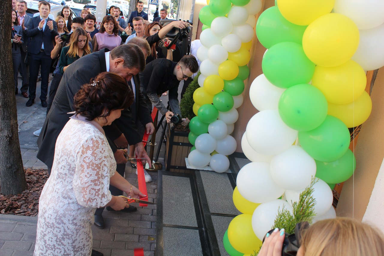Символічну стрічку на вході в корпус перерізали ректор КНТЕУ Мазаракі Анатолій Антонович, директор ВТЕІ КНТЕУ Замкова Наталія Леонідівна, перший заступник голови Вінницької обласної державної адміністрації Гижко Андрій Петрович.