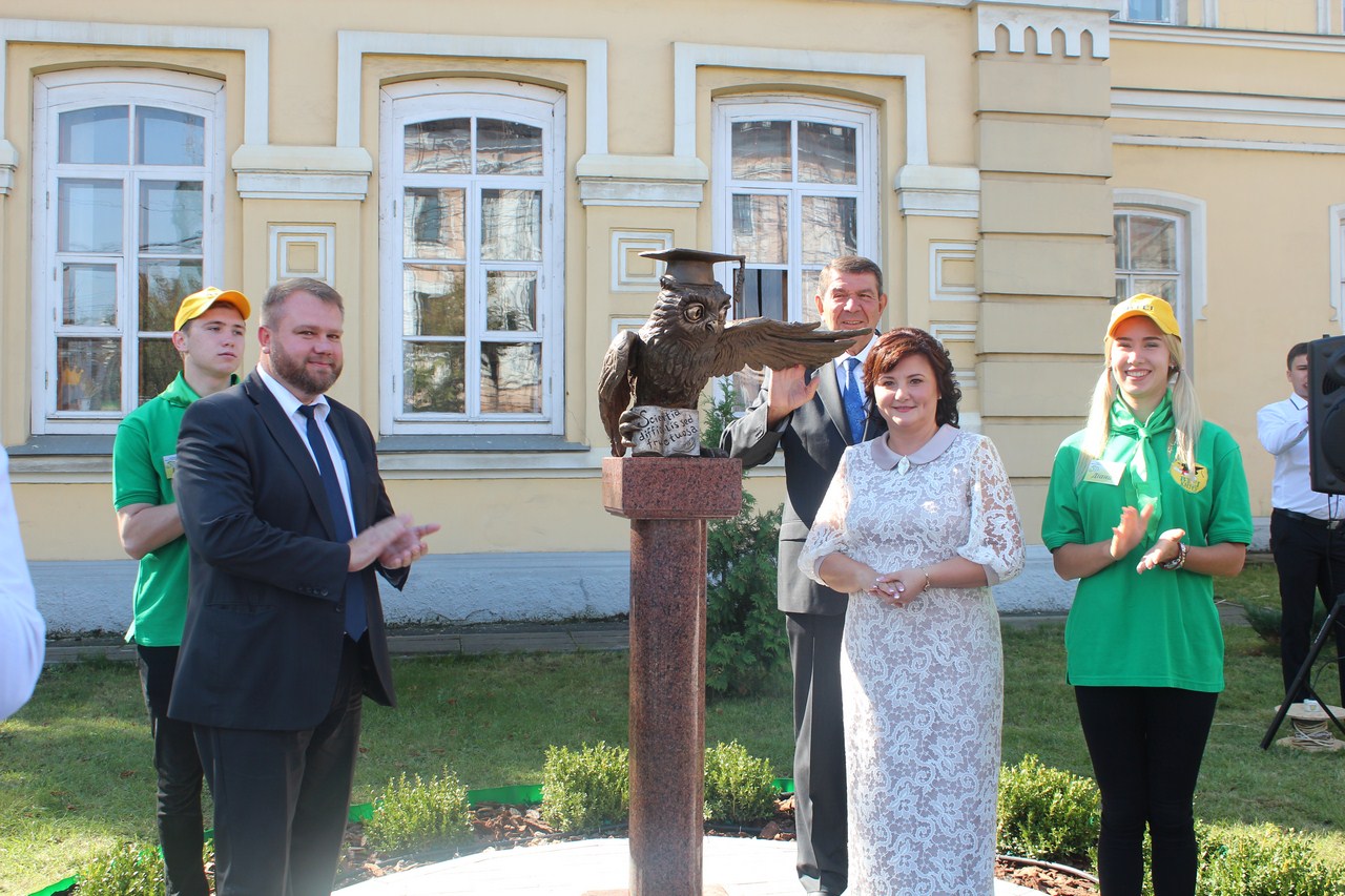 Урочистості розпочалися з відкриття бронзової скульптури символічного знаку мудрості та знань – СОВИ з латинським девізом КНТЕУ «Scientia difficilis sed fructuosa» («Наука важка, але плідна»). Автор цієї скульптури художник–скульптор Яна Роздобудько.