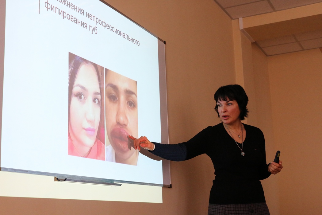 Ірини Василівна розповіла студенткам факультету про небезпеки сучасних косметичних маніпуляцій та пластичних операцій в умовах комерціалізації медицини. Під час майстер-класу були представлені досліди сучасних космецевтиків та естетичних методик з погляду доказової медицини. Також розглядалась тема про необхідність дотримання пріоритету безпеки, щоб в погоні за красою не втратити здоров’я, зберегти функції органів, які ми піддаємо корекції та зберегти індивідуальність зовнішності.