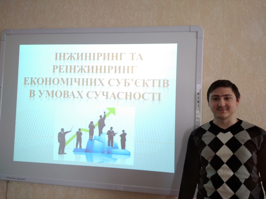 Тема засідання дискусійного клубу «Оптимізація бізнес-процесів підприємств та організацій за допомогою сучасних інформаційних систем та технологій». З доповідями виступили: фахівець з комп’ютерних інформаційних систем (університет м. Фенікс, штат Арізона, США) Джонатан Кларк та здобувачі гр.ЕК-41д: Косніцький С.А., Кулініч Р.С., Мельничук В.О., Цибульський В.М., Філіппов Ю.Ю. У результаті обговорення виступів здобувачів було прийнято рішення, що рівень проведеного дослідження у представлених доповідях відповідає всім необхідним вимогам та матеріал може бути рекомендований для друку у студентських науково-практичних конференціях.