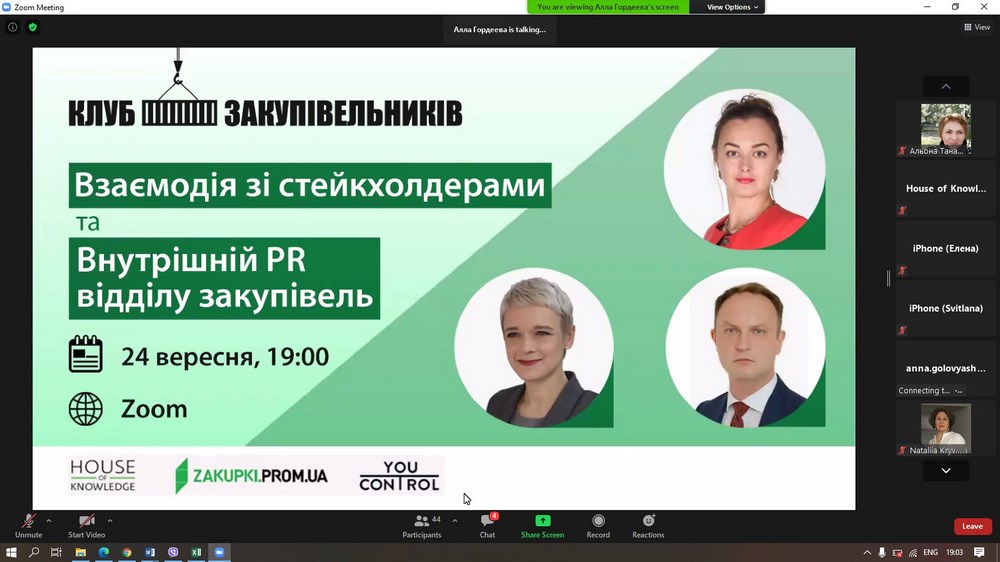 24 вересня 2020 року викладачі та здобувачі вищої освіти Вінницького торговельно-економічного інституту КНТЕУ брали участь у засіданні Клубу Закупівельників, яке було присвячене надважливій темі: «Взаємодія зі стейкхолдерами та внутрішній PR відділу закупівель».