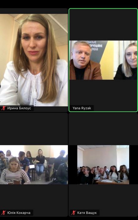 5 жовтня 2020 року з нагоди відзначення Дня юриста України, для студентів 1-2 курсів, які навчаються за спеціальністю «Право», була проведена Онлайн зустріч із прадставниками Національного антикорупційного бюро України.