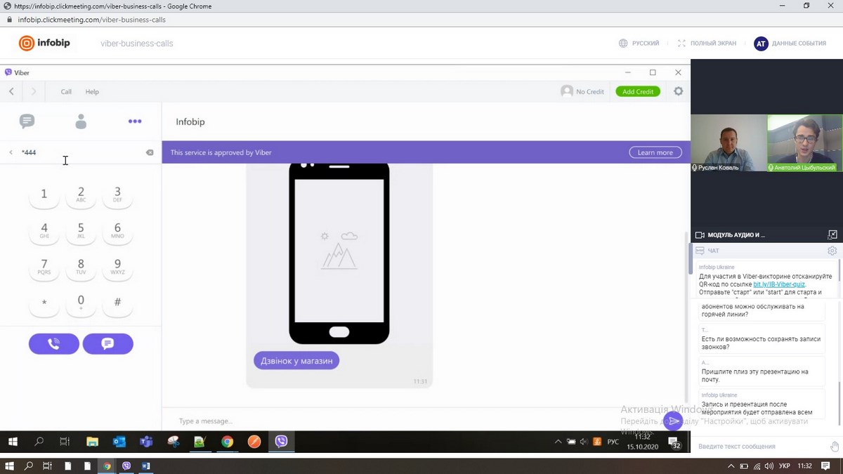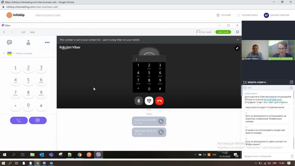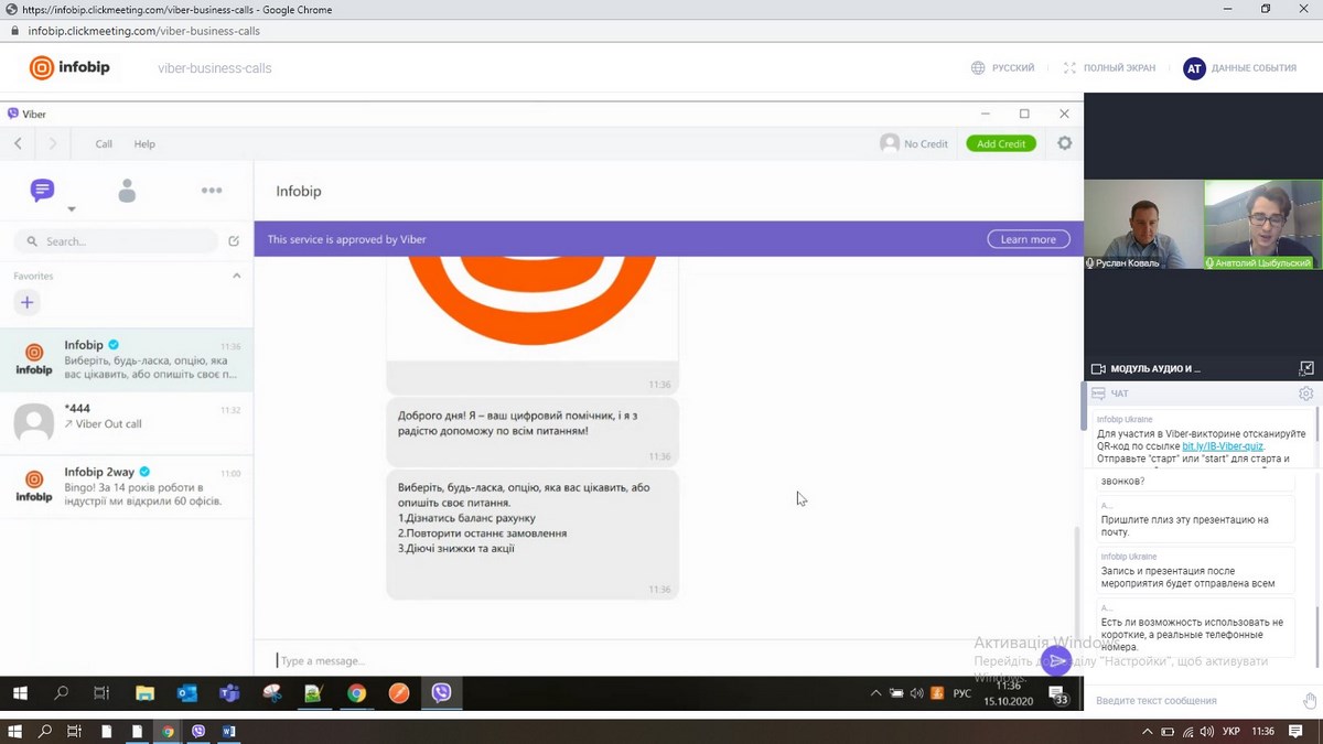 15 жовтня 2020 року слухачі Бізнес-школи ВТЕІ КНТЕУ брали участь онлайн у вебінарі на тему "Можливості Viber Business Calls" від компанії Infobip.