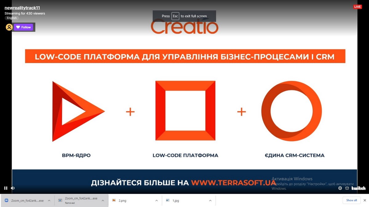 презентація можливостей "Програмного продукту Creatio 7.17" від Віталія Гдуля - директора з розвитку платформи Terrasoft та Івана Малафєєва - директора з розвитку продуктів Terrasoft;