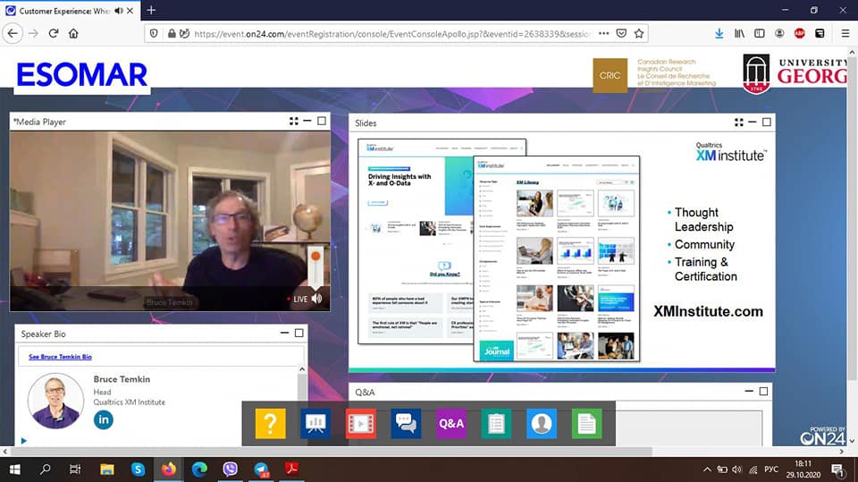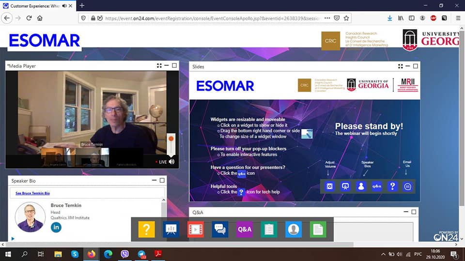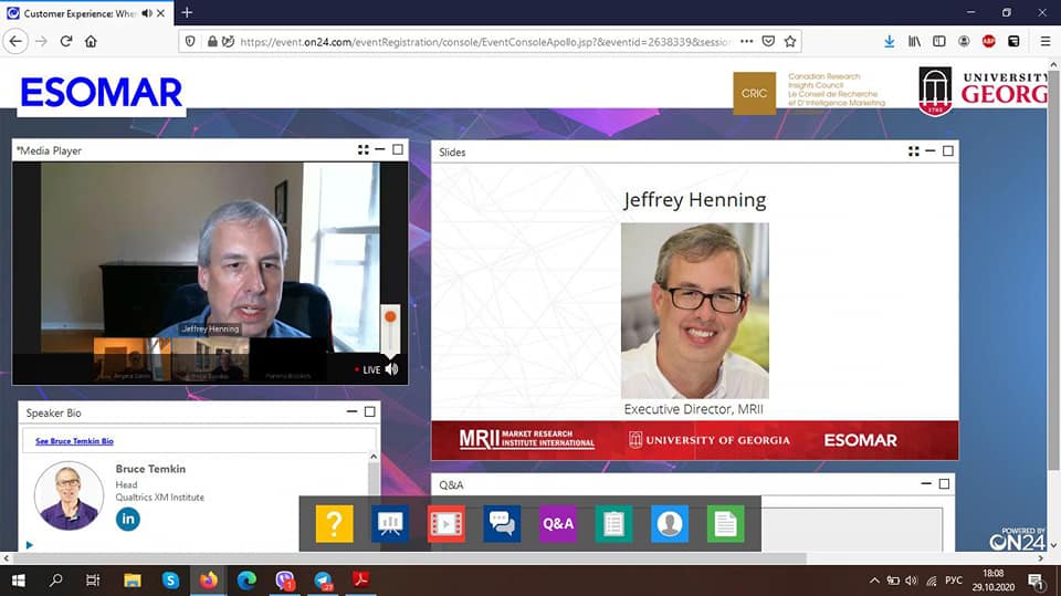 29 жовтня 2020 року викладачі та здобувачі вищої освіти ВТЕІ КНТЕУ - слухачі Бізнес-школи ВТЕІ КНТЕУ брали участь в міжнародному вебінарі на тему "Customer Experience: Where It’s Been And Where It’s Heading" від компанії ESOMAR (European Society of Marketing Research Professionals) — Європейської асоціації дослідників громадської думки і маркетингу.
