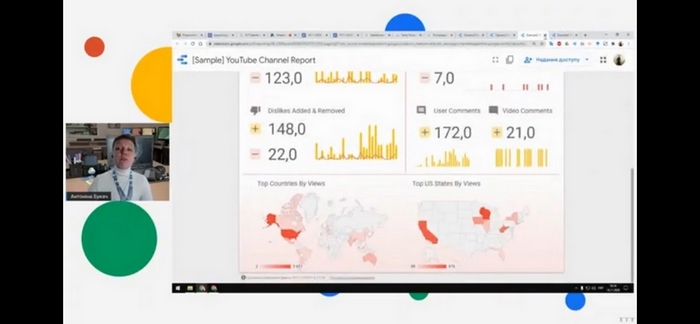 Антоніна Букач (сертифікований тренер Google) детально провела практикум щодо використання Google Академії, продемонструвала можливості розширеного пошуку Google та Google Alerts, користування Google Public Data, Dataset Search, Google Data Studio та Google Cloud Platform для наукової роботи. Особливу увагу було приділено організації ефективного дистанційного навчання на платформі G Suite – одному з найзручніших хмарних сервісів.