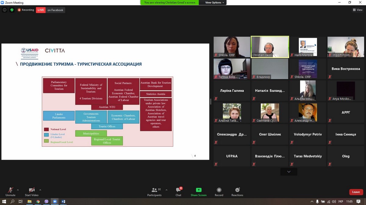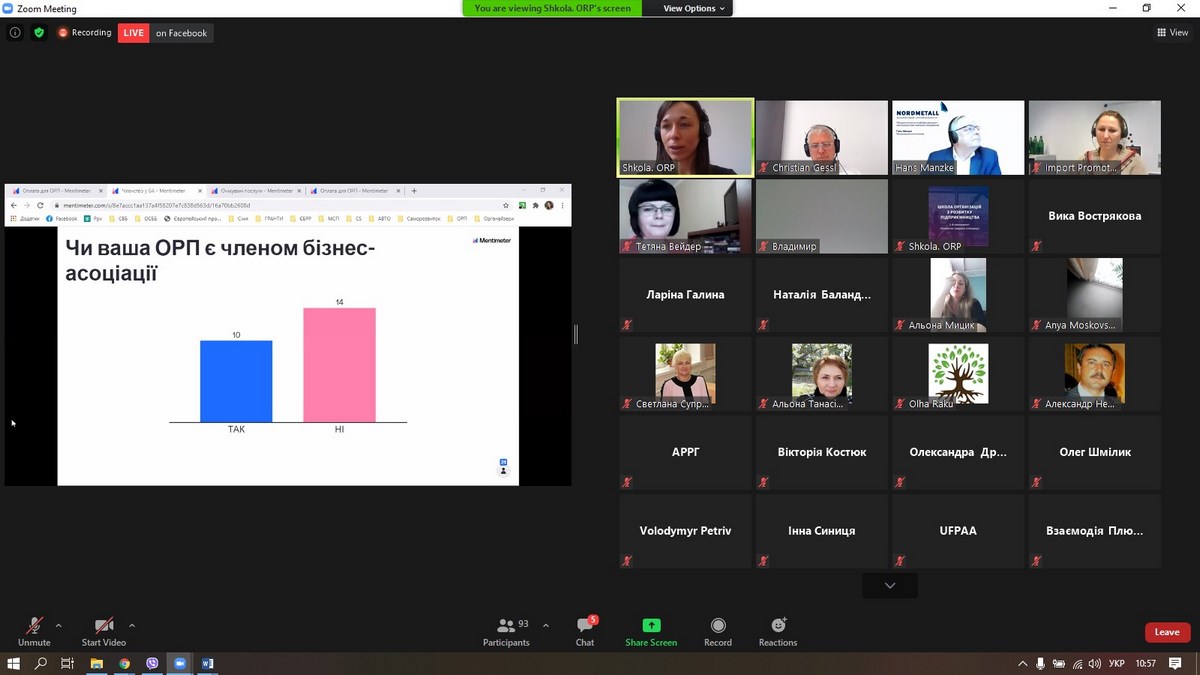 Обговорювалися практики, які використовують для визначення організаційної структури та завдань, розвитку членства, налагодження співпраці всередині й поза об'єднаннями підприємців, фінансування діяльності ОРП, в тому числі шляхом надання платних послуг.