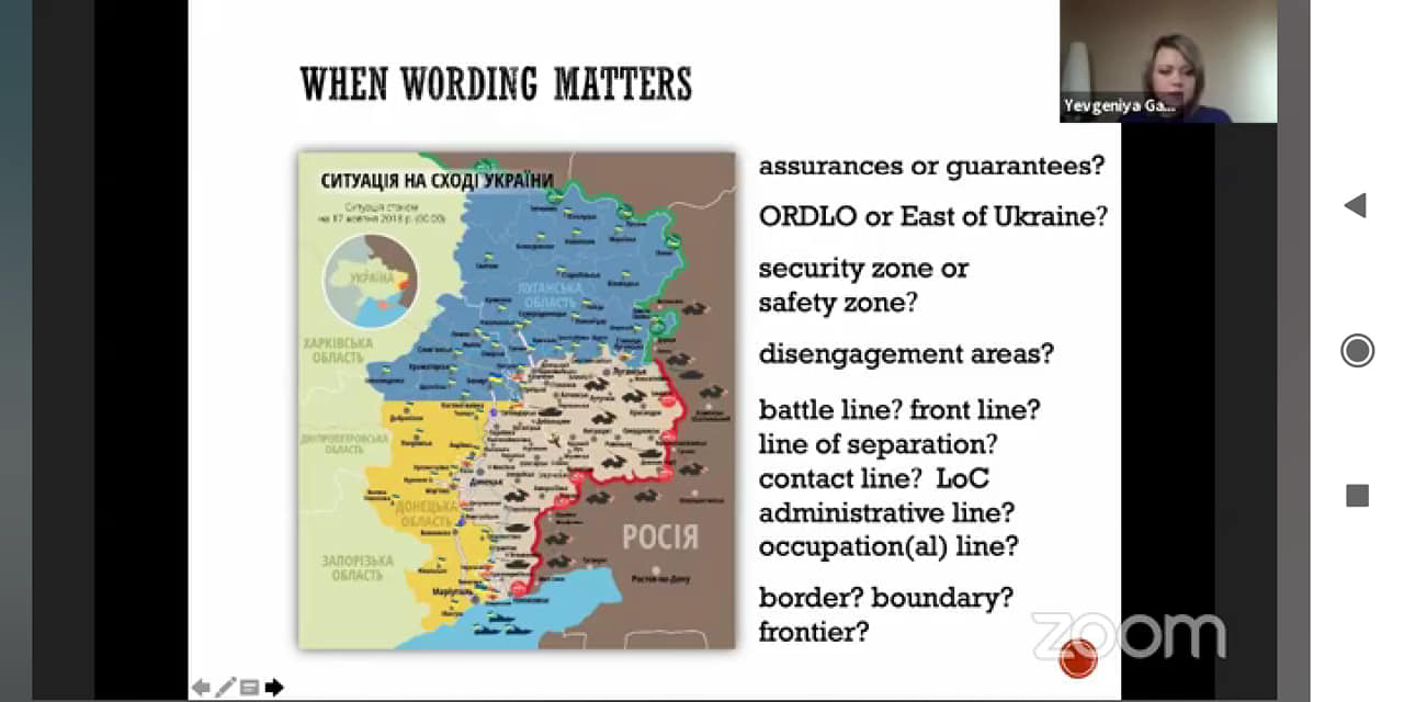 Спікером форуму стала Євгенія Габер, кандидат політичних наук, автор більше сорока наукових праць, які стосуються питань зовнішньої політики України, безпеки у Чорноморському регіоні та на Близькому Сході, заступник директора Дипломатичної академії України імені Геннадія Удовенка при МЗС.