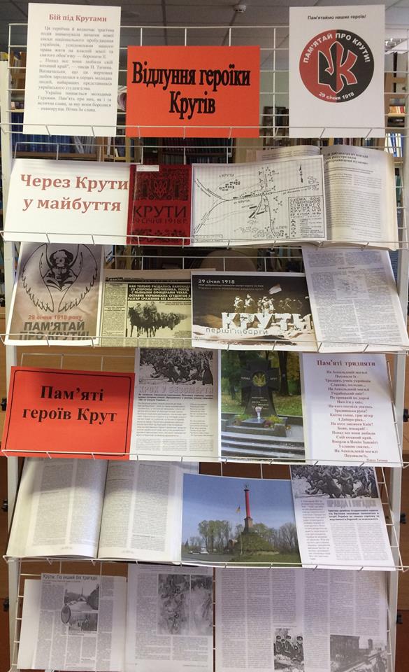 До цієї героїчної події в читальній залі №3 бібліотеки інституту організовано книжково-ілюстровану виставку-пам’ять «Відлуння героїки Крутів».