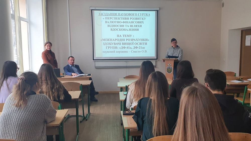 18 лютого 2021 року в рамках проведення ІХ Фестивалю студентської науки у Вінницькому торговельно-економічному інституті КНТЕУ відбулося відкрите засідання наукового гуртка кафедри фінансів «Перспективи розвитку валютно-фінансових відносин та шляхи вдосконалення» на тему «Міжнародні розрахунки» (керівник – доцент Смагло О.В.). У заході взяли участь здобувачі освітнього ступеня «бакалавр» 2 та 4 курсів спеціальності 072 «Фінанси, банківська справа та страхування». З цікавими доповідями і презентаціями виступили члени наукового гуртка Ольга Козійчук, Аліна Мельничук, Катерина Гуменюк та Анастасія Давидюк.