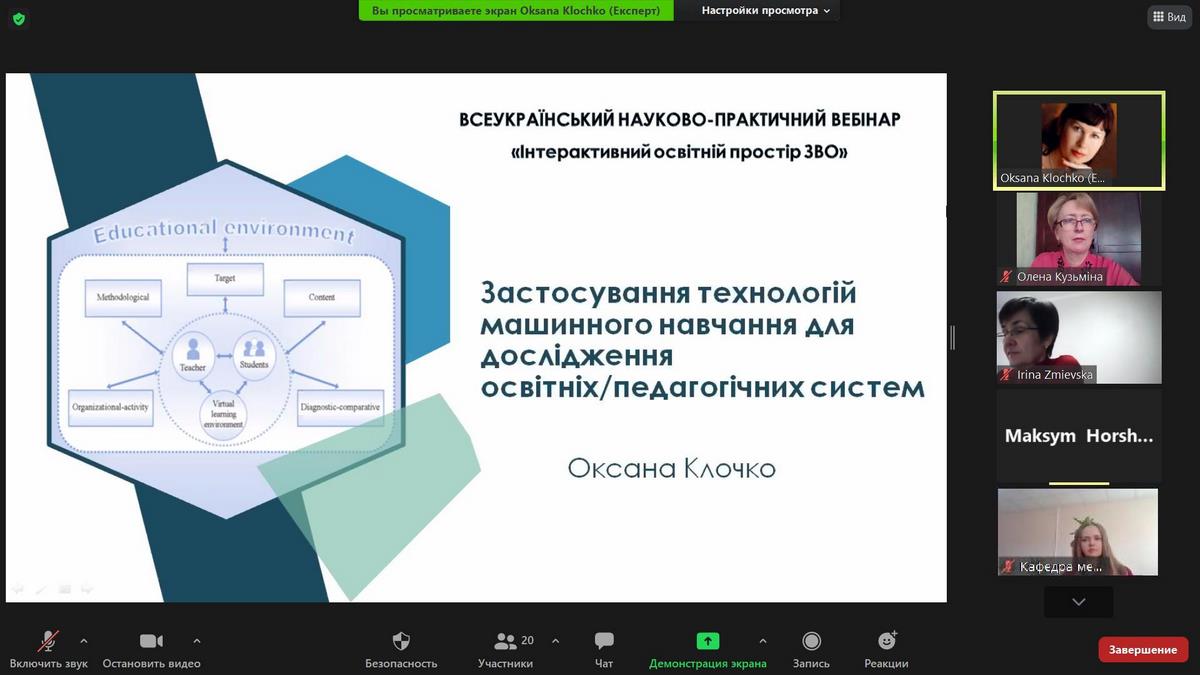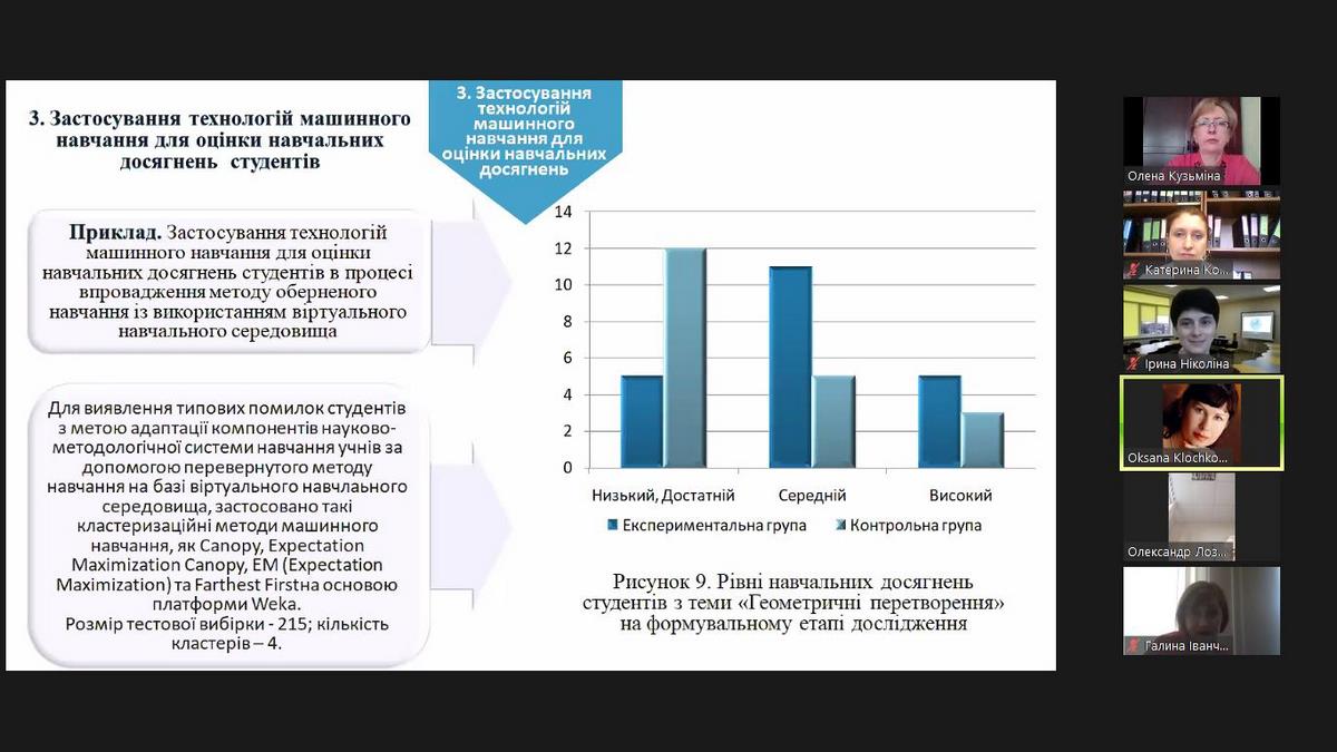 − Застосування технологій машинного навчання для дослідження освітніх/педагогічних систем (Оксана Клочко, д.пен.н., професор, ВДПУ імені Михайла Коцюбинського);