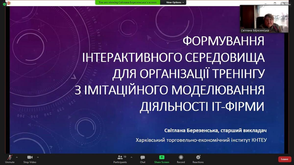 − Формування інтерактивного середовища для організації тренінгу з імітаційного моделювання діяльності ІТ-фірми (Світлана Березенська, старший викладач, ХТЕІ КНТЕУ);