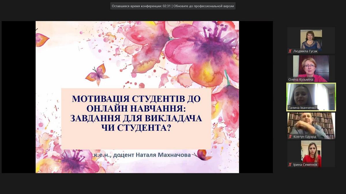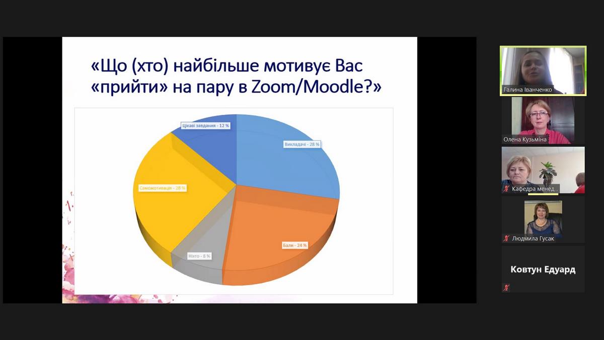 Усі презентації викликали жваве обговорення, в ході якого викладачі ділилися власним досвідом щодо організації інтерактивного освітнього простору закладу вищої освіти та особливостей його реалізації в умовах дистанційного навчання.