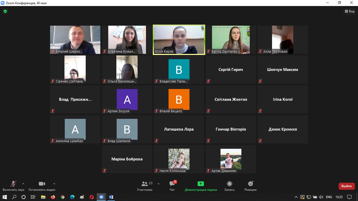 У засіданні взяли участь 23 особи, серед них здобувачі вищої освіти груп ХТ-11д, ПТБД-21д, ТКЛ-31д, ТКЛ-41д; науково-педагогічні працівники кафедри товарознавства, експертизи та торговельного підприємництва.