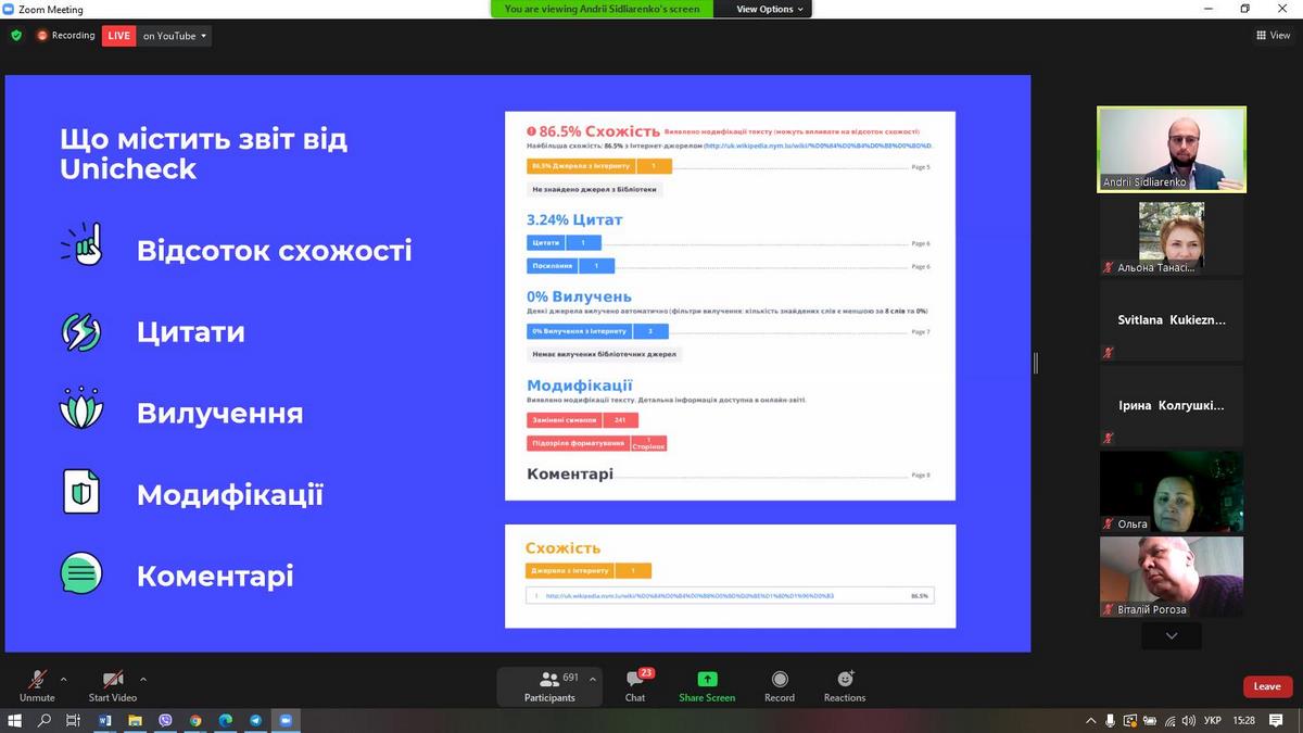 Щиро дякуємо команді Unicheck та Academic IQ за організацію заходу, особисто Андрію Сідляренко за обмін досвідом, за практичні поради щодо аналізу звіту про перевірку на плагіат.