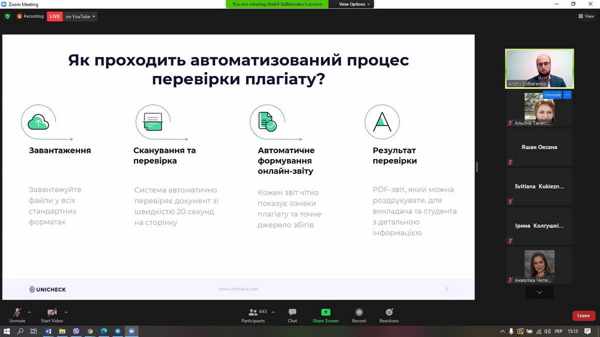 Спікером заходу став експерт з академічної доброчесності, комерційний директор Unicheck Україна Андрій Сідляренко.