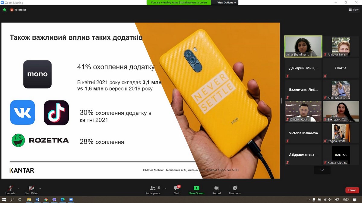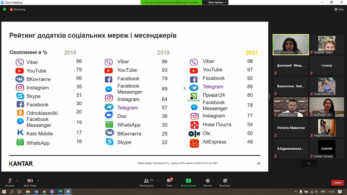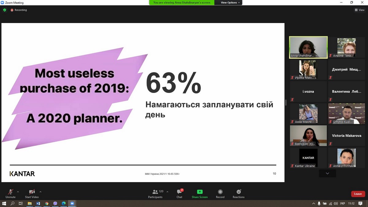 27 травня 2021 року викладачі та здобувачі вищої освіти ВТЕІ КНТЕУ брали участь у вебінарі «Споживацькі настрої українців 2021», який проводила Анна Шахдінарян, Account Director Kantar Ukraine за організації провідної у світі дослідницької компанії – «Kantar Україна».