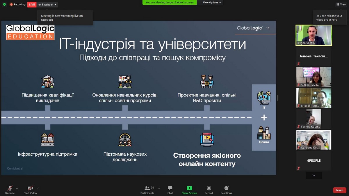 Євген Сакало, координатор університетської програми GlobalLogic в Україні запропонував до розгляду пропозиції, як ставати взаємовигідними партнерами бізнесу та освіті завдяки цифровій трансформації.