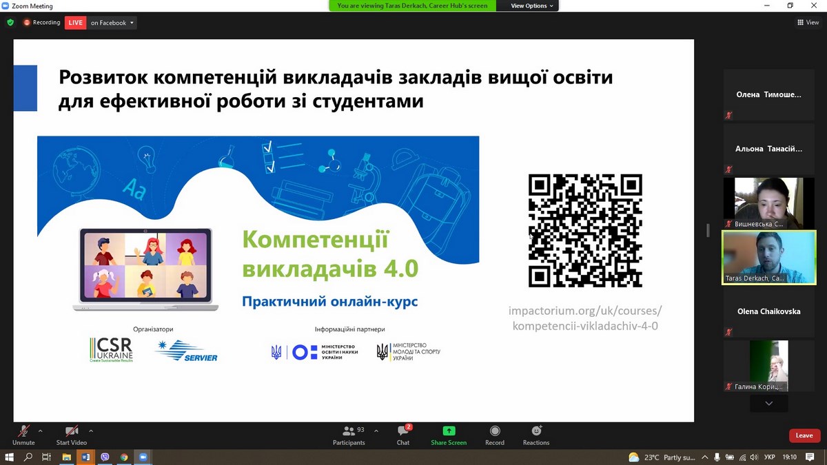 Тарас Деркач, координатор Career Hub запропонував практичні кейси співпраці бізнесу та освіти в розрізі розвитку кар’єрних послуг та ефективного працевлаштування молоді.