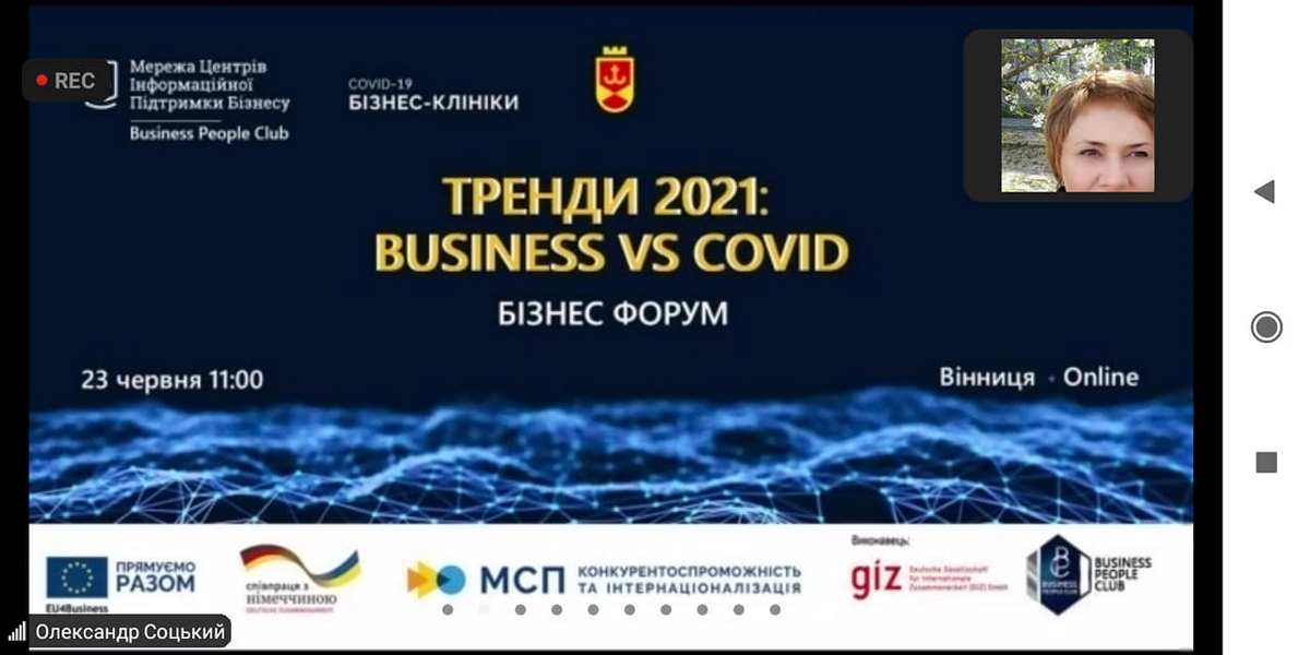23 червня 2021 року викладачі та здобувачі вищої освіти ВТЕІ КНТЕУ брали участь у Бізнес форумі "Тренди 2021: BUSINESS vs COVID" від Business People Club, в рамках ініціативи COVID-19 БІЗНЕС-КЛІНІКИ проєкту «EU4Business: конкурентоспроможність та інтернаціоналізація МСП».
