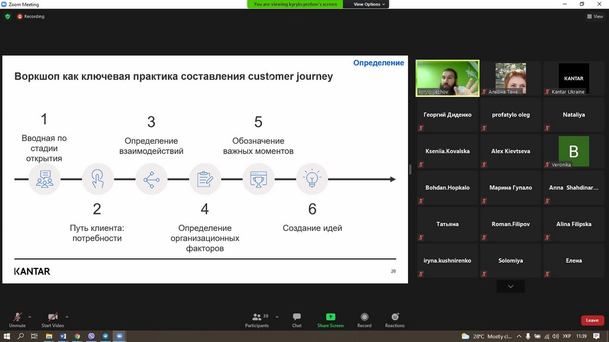 24 червня 2021 року слухачі Бізнес-школи ВТЕІ КНТЕУ брали участь у вебінарі «Customer Journey: не все включено. Як вирішувати проблеми бізнесу та уникати помилок» від провідної у світі дослідницької компанії – Kantar, який проводив Кирило Єжов - New Product Development Director Kantar Ukraine.