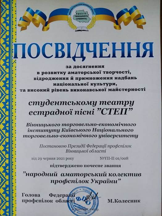 Гордимося, що в числі кращих народних колективів області було відмічено і три колективи Вінницького торговельно-економічного інституту КНТЕУ: