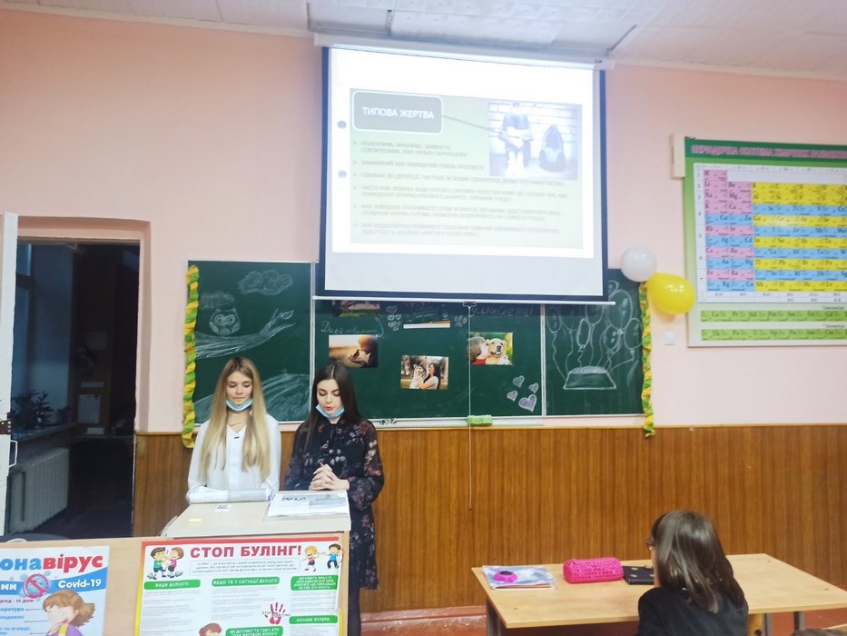 Під час тренінгу учні отримали інформацію про булінг, різновиди булінгу, компоненти та структуру булінгу. Студенти визначили "групи ризику", які можуть стати булерами і жертвами. Було надано рекомендації щодо протидії булінгу всім учасникам освітнього процесу, доповідачі акцентували увагу на тому, як дітям уникнути цькуванню в школі; як батькам вберегти дитину від знущань; як діяти вчителям, коли в класі присутній булінг; як виявити агресора та жертву в школі.