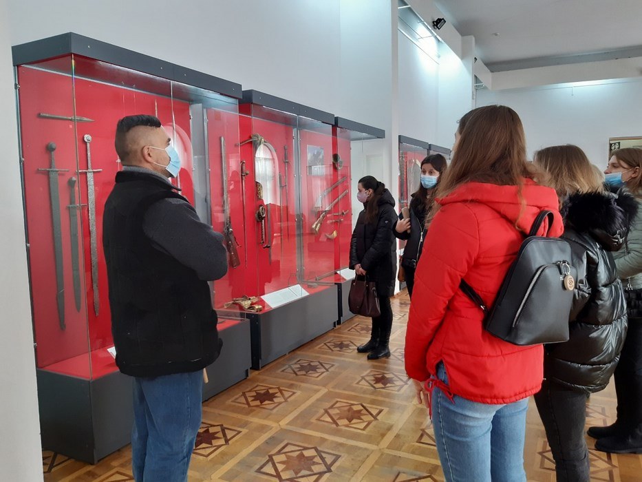 27 жовтня 2021 року здобувачі вищої освіти за спеціальністю 242 «Туризм» (гр. Т-21д) на чолі з асистентом кафедри туризму та готельно-ресторанної справи Катериною Антонюк у рамках вивчення навчальної дисципліни «Організація туризму» відвідали виставку Вінницького обласного краєзнавчого музею «Зброя та військове спорядження: від давнини до сучасності». Прослухавши тематичну екскурсію, здобувачі вищої освіти поповнили багаж своїх знань цікавими подіями та фактами з історичного минулого України та світу.
