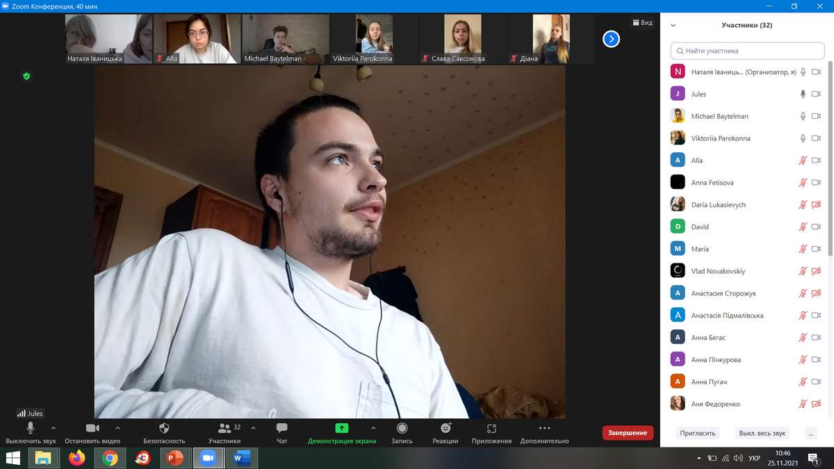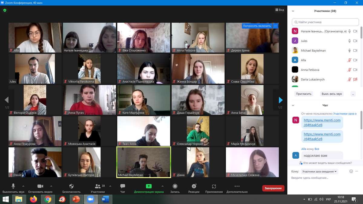 25 листопада 2021 року кафедра іноземної філології та перекладу продовжила серію майстер-класів за підтримки ГО Pangeya Ultima та волонтерів Європейського корпусу солідарності. Цього разу говорили про те, якими є захоплення сучасної молоді в різних країнах та як вони впливають на професійний розвиток. Гості з Нідерландів та Франції разом зі студентами спеціальностей «Філологія» та «Підприємництво та торгівля» обговорювали найбільш популярні хобі, які допомагають креативно мислити й керувати часом, комунікувати, формують навички нетворкінгу та командної роботи. Дякуємо нашим колегам за співпрацю та корисну розмову!