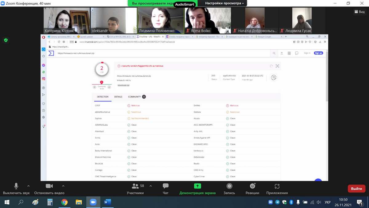 Лекція відбулась відповідно до затвердженого Плану заходів щодо співпраці Вінницького торговельно-економічного інституту КНТЕУ та Департаменту кіберполіції (міжрегіональний територіальний підрозділ) Національної поліції України на 2021-2022 навчальний рік. У заході взяли участь понад 60 здобувачів вищої освіти спеціальностей 126 «Інформаційні системи та технології» (освітня програма «Інформаційні технології у бізнесі») та 051 «Економіка» (освітня програма «Економічна кібернетика») освітніх ступенів «молодший бакалавр» та «бакалавр». Дякуємо за цікаву лекцію та сподіваємось на подальшу співпрацю!