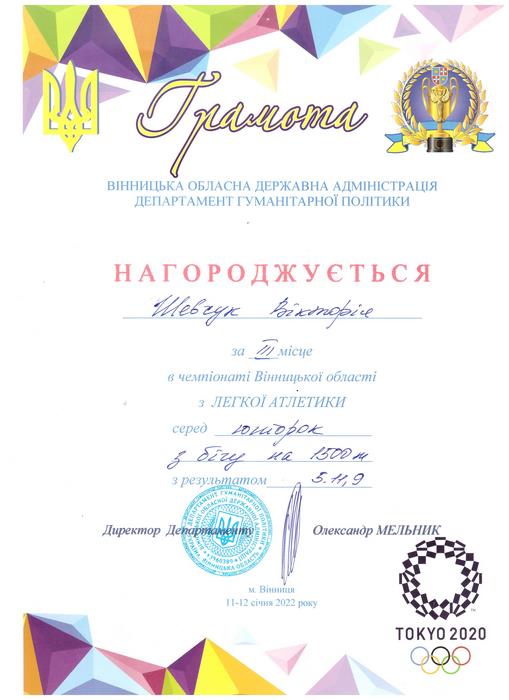 За результатами змагань Вікторія Шевчук виборола І місце серед юніорок на дистанції з бігу 800 м та ІІІ місце – на дистанції 1500 м.