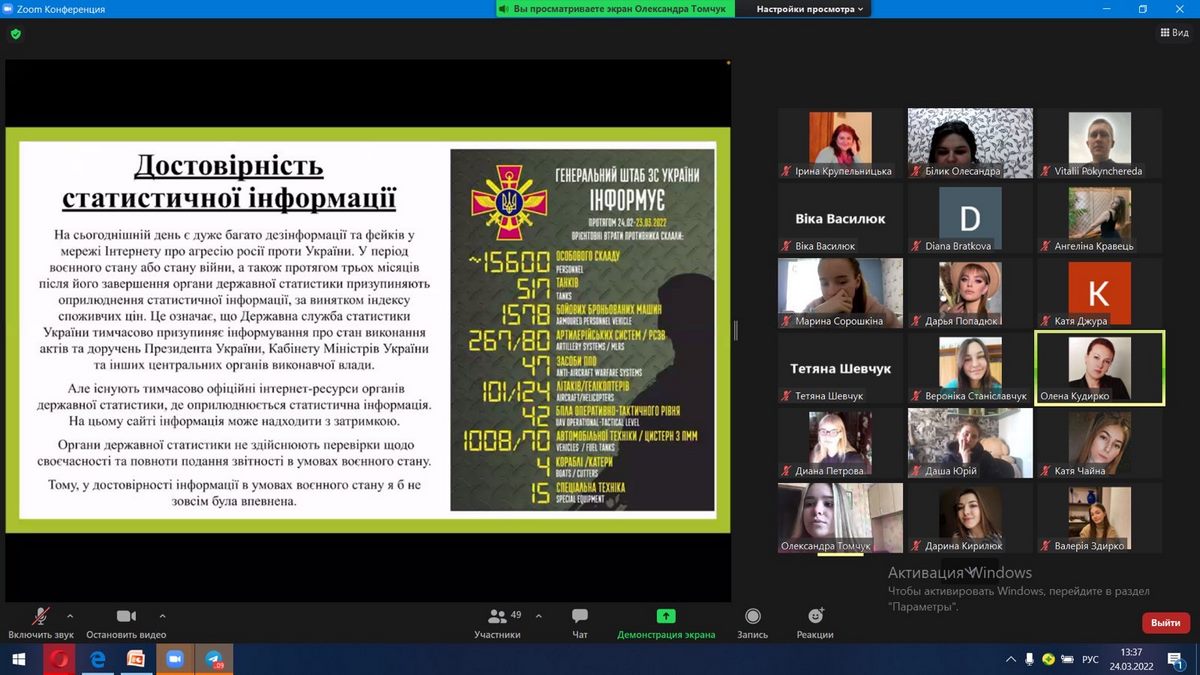 Усі учасники відкритого гуртка брали активну участь в обговоренні проблем статистики в умовах військового стану. Кафедра обліку та оподаткування дякує учасникам гуртка за активну участь, змістовні доповіді та презентації.