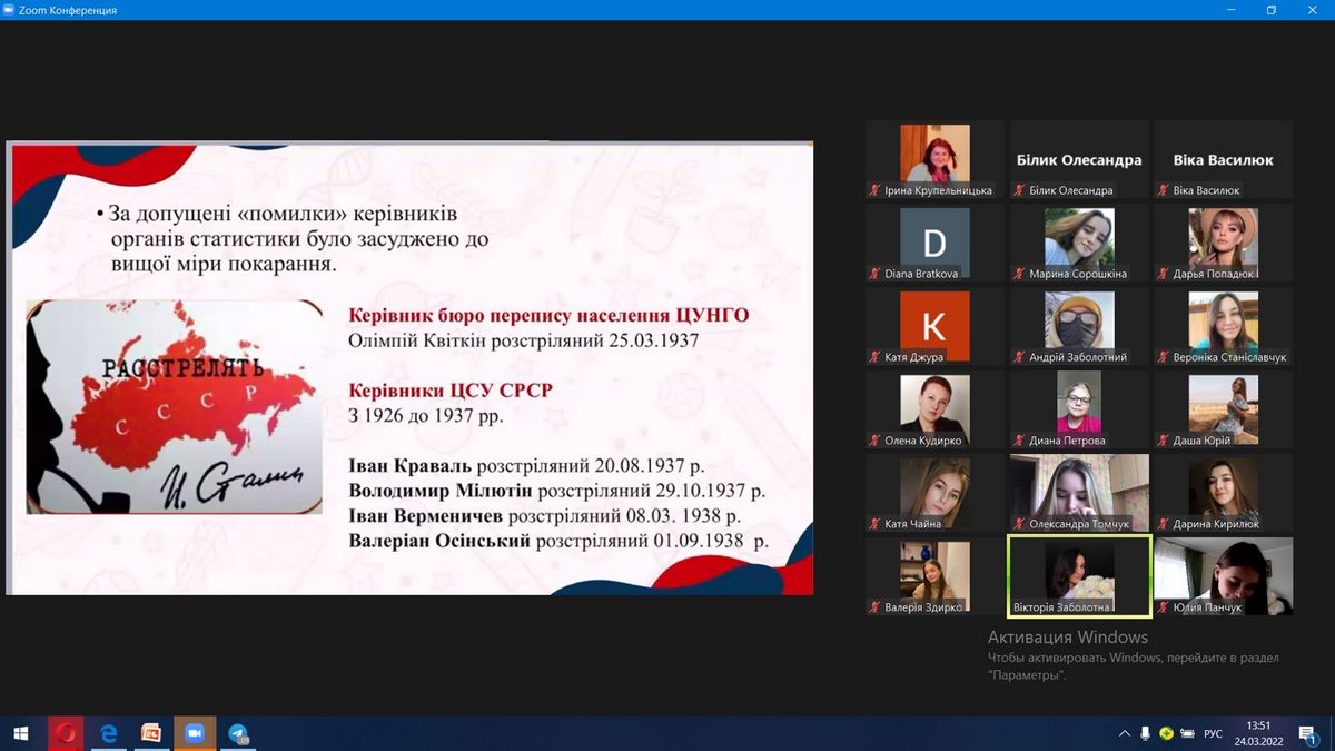 24 березня 2022 року на базі кафедри обліку та оподаткування Вінницького торговельно-економічного інституту ДТЕУ відбулося відкрите засідання наукового гуртка з дисципліни «Статистика» на тему: «Достовірність статистичної інформації в умовах військового стану». На заході було представлено 19 доповідей здобувачів вищої освіти груп ОО-11д, М-11д, М-11мб, Е-21д та ФБСС-21д денної форми навчання.