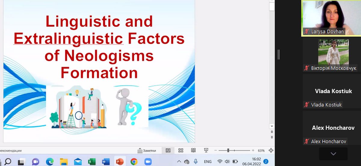 6 квітня 2022 року кафедрою іноземної філології та перекладу Вінницького торговельно-економічного інституту ДТЕУ було проведено відкрите засідання наукового гуртка “Translation Studies” під керівництвом доц. Лариси Довгань на тему “Формування та функціонування неологізмів в сучасній англійській мові”.