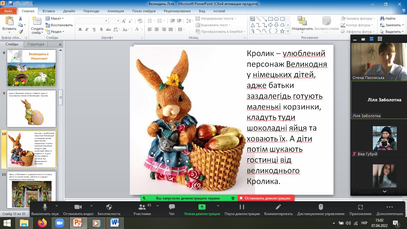 - «Великдень у зарубіжних країнах: традиції святкування» - Баранець Марина (гр. ХТ-31д);