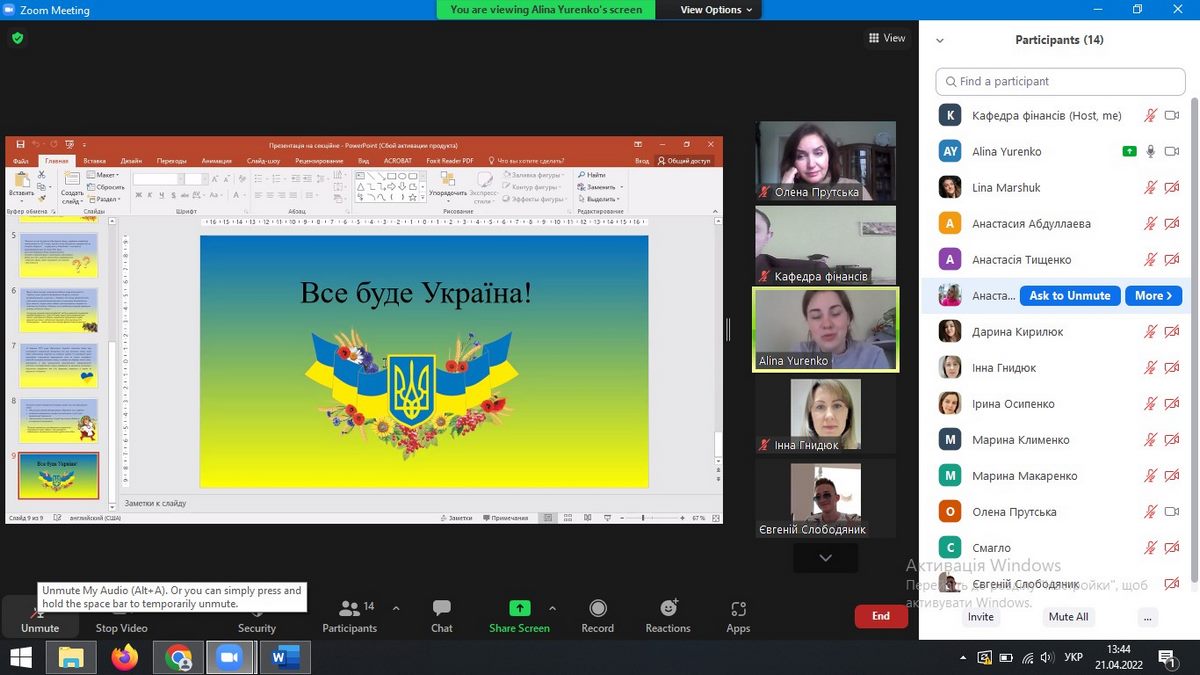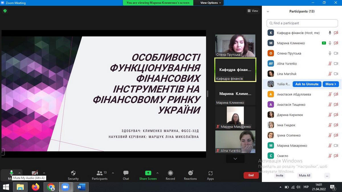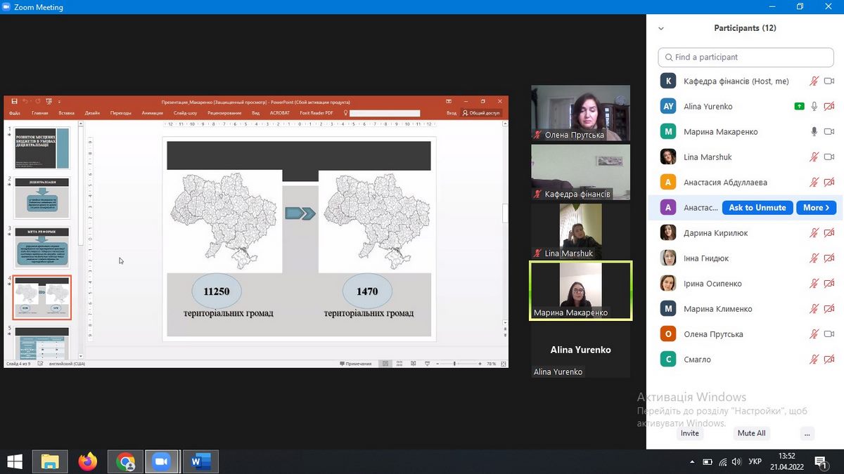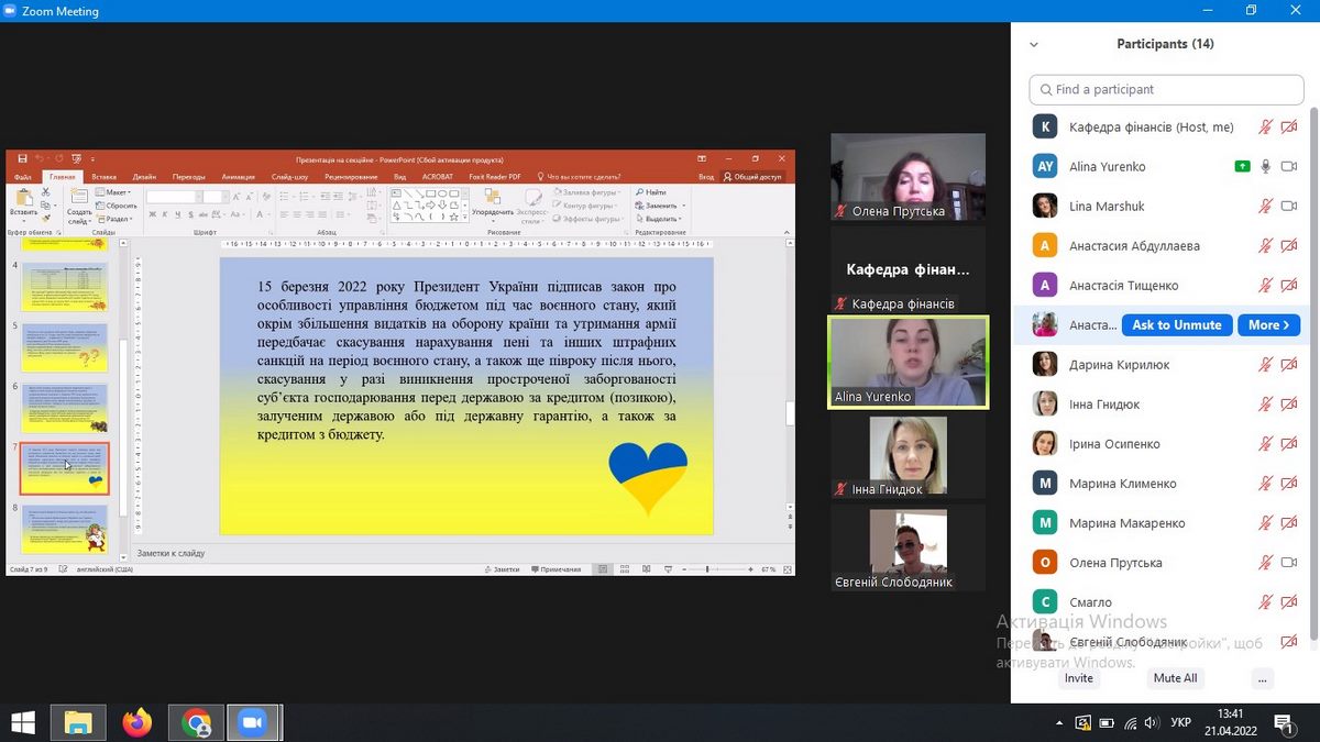 21 квітня 2022 року дистанційно на платформі Zoom було проведено засідання секції 7 «Фінансовий механізм забезпечення соціально-економічного розвитку країни» в рамках XІ Всеукраїнської студентської науково-практичної конференції «Актуальні проблеми ефективного соціально-економічного розвитку України: пошук молодих».