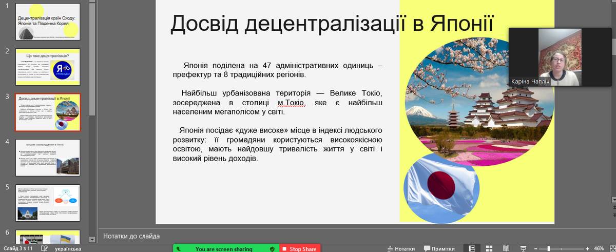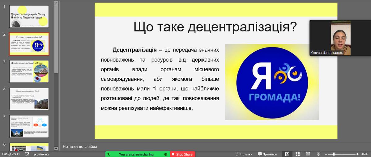 5. Каріна Чапліч та Олена Шпорталюк, гр. ПУА-21д, доповідь на тему «Досвід децентралізації країн Сходу» виконана під науковим керівництвом к.н.держ.упр., доцентки Ніколіної Ірини.