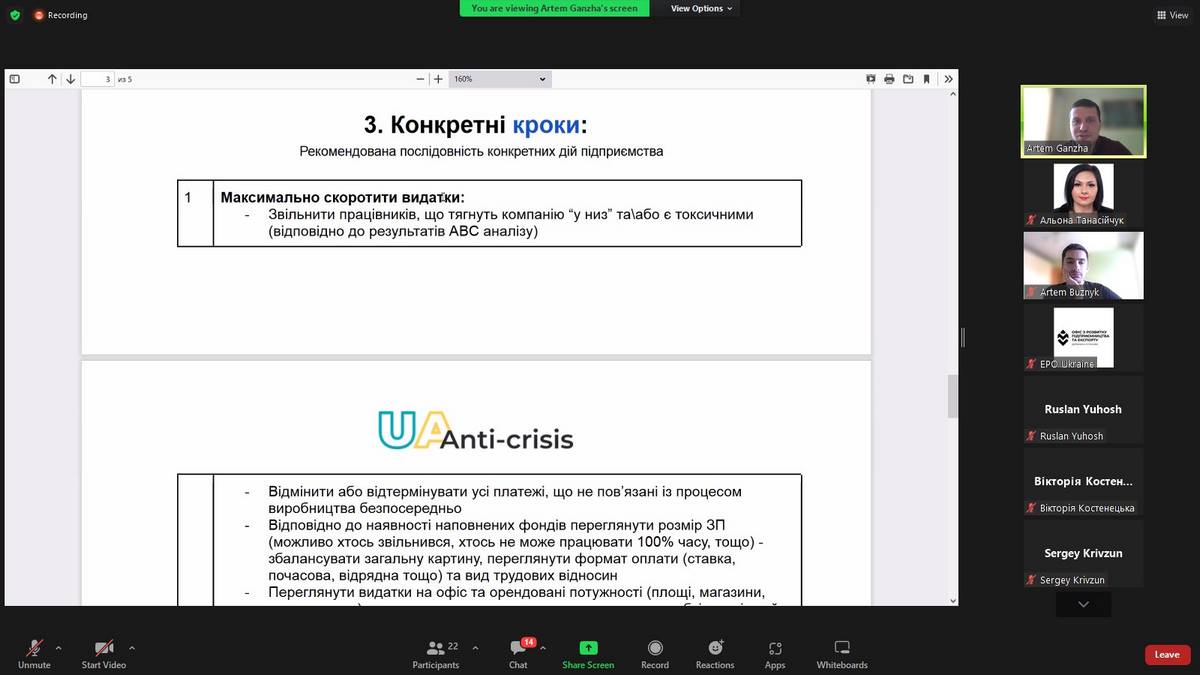 Участь слухачів Бізнес-школи ВТЕІ ДТЕУ у вебінарі «Чекліст для перезапуску бізнесу» в рамках проєкту Дія.Бізнес «UA Anti-crisis»