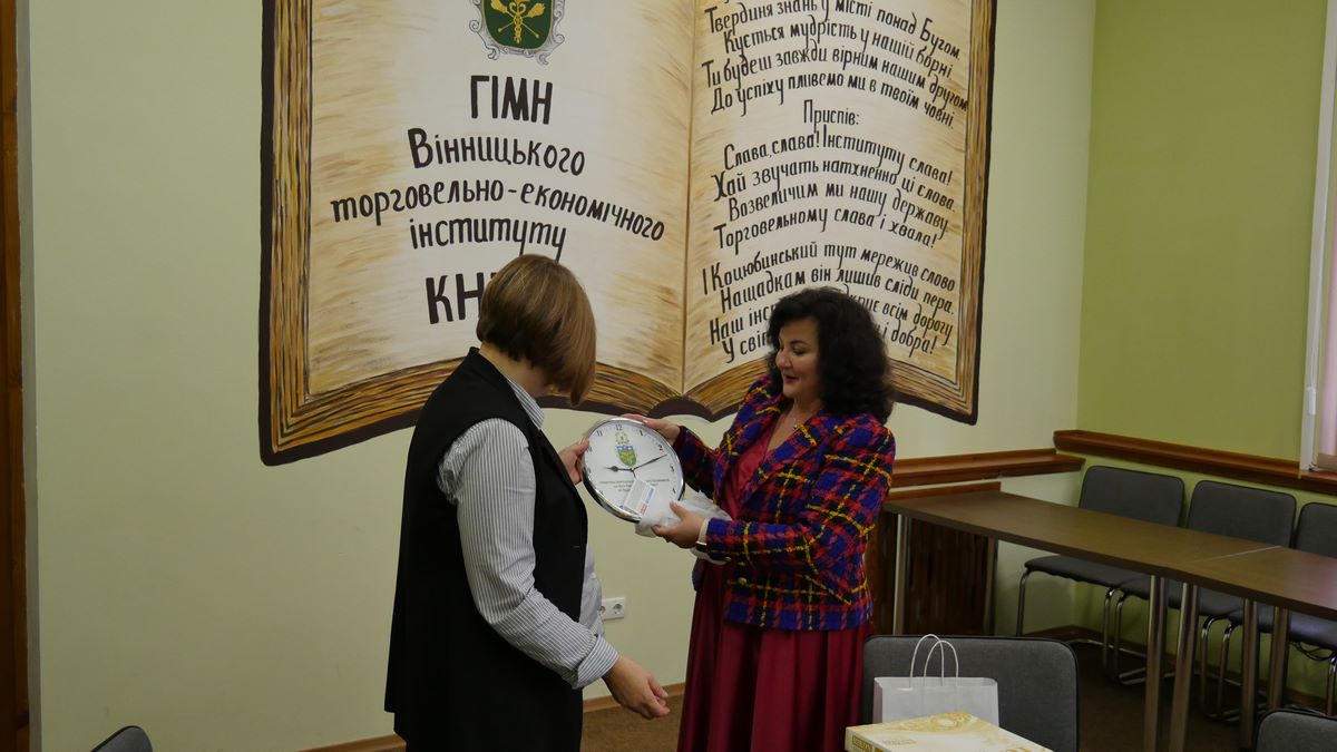 Директор КЗ «Вінницький ліцей № 7 ім. Олександра Сухомовського» Ганна Романова подарувала директору ВТЕІ ДТЕУ Наталії Замковій книгу «Національна автентична школа-ліцей. Авторська модель Олександра Сухомовського». У даній книзі опубліковано і статтю Наталії Замкової під назвою «Роки плідної співпраці та взаєморозуміння», в якій директор інституту описує спільні досягнення ВТЕІ ДТЕУ та КЗ «Вінницький ліцей № 7 ім. Олександра Сухомовського» за роки спільної освітньої діяльності.