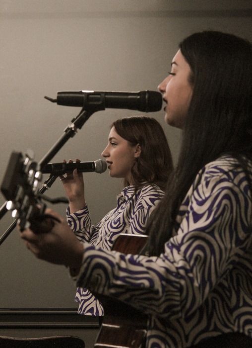 У ВЕЧОРНИЦЯХ взяли участь і студентки ВТЕІ - талановиті учасниці дуету «Крила» народного театру пісні «СТЕП» - Анастасія Рабозей та Анастасія Моргунова. Для дівчат вже стало традиційним за час війни долучатися до таких благодійних заходів та своєю щирою піснею зігрівати душі та наближати Перемогу.