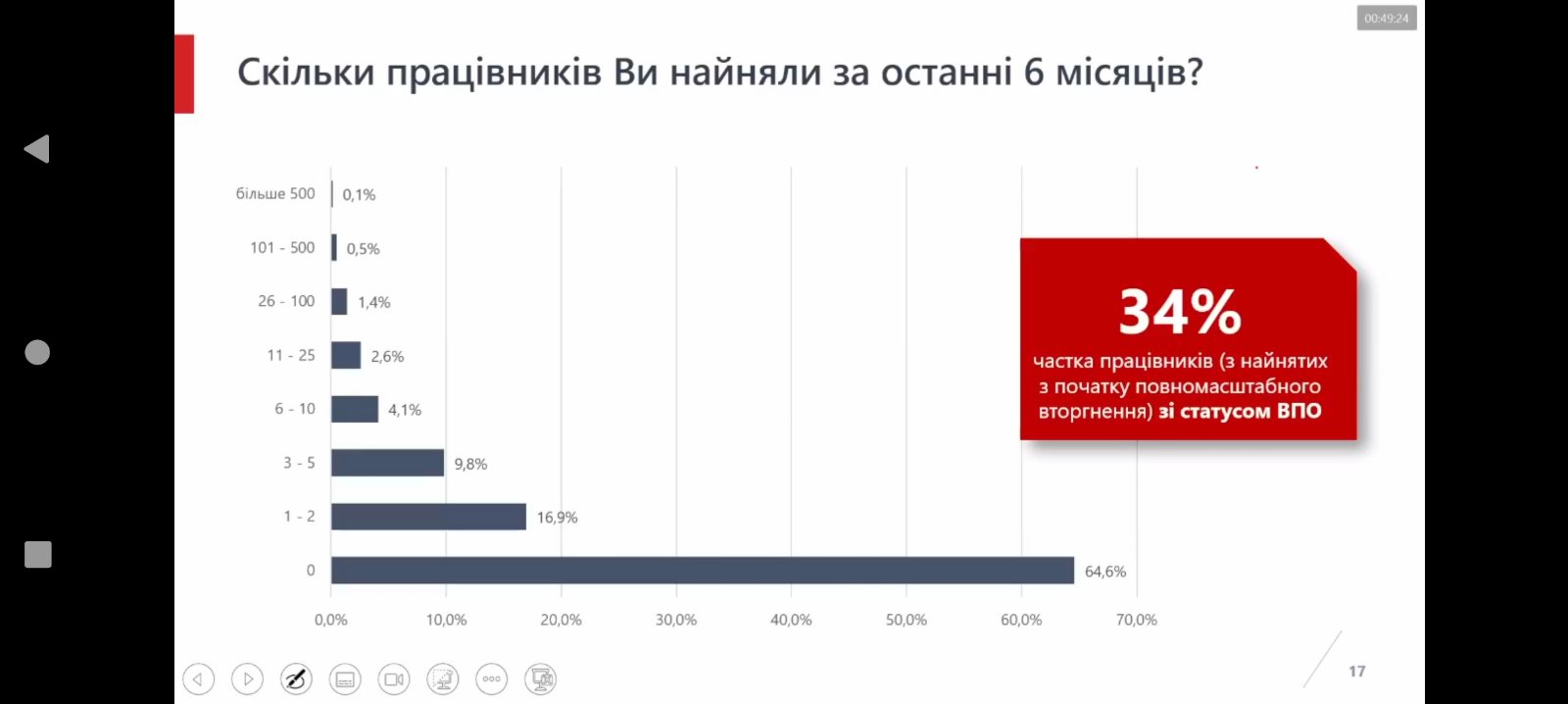 Результати презентації досліджень свідчать про те, що український бізнес показує сигнали відновлення, більше 70% підприємств працюють, сплачують податки, підтримують ВПО та ЗСУ. Проте, бізнес очікує від держави підвищення рівня економічних свобод.