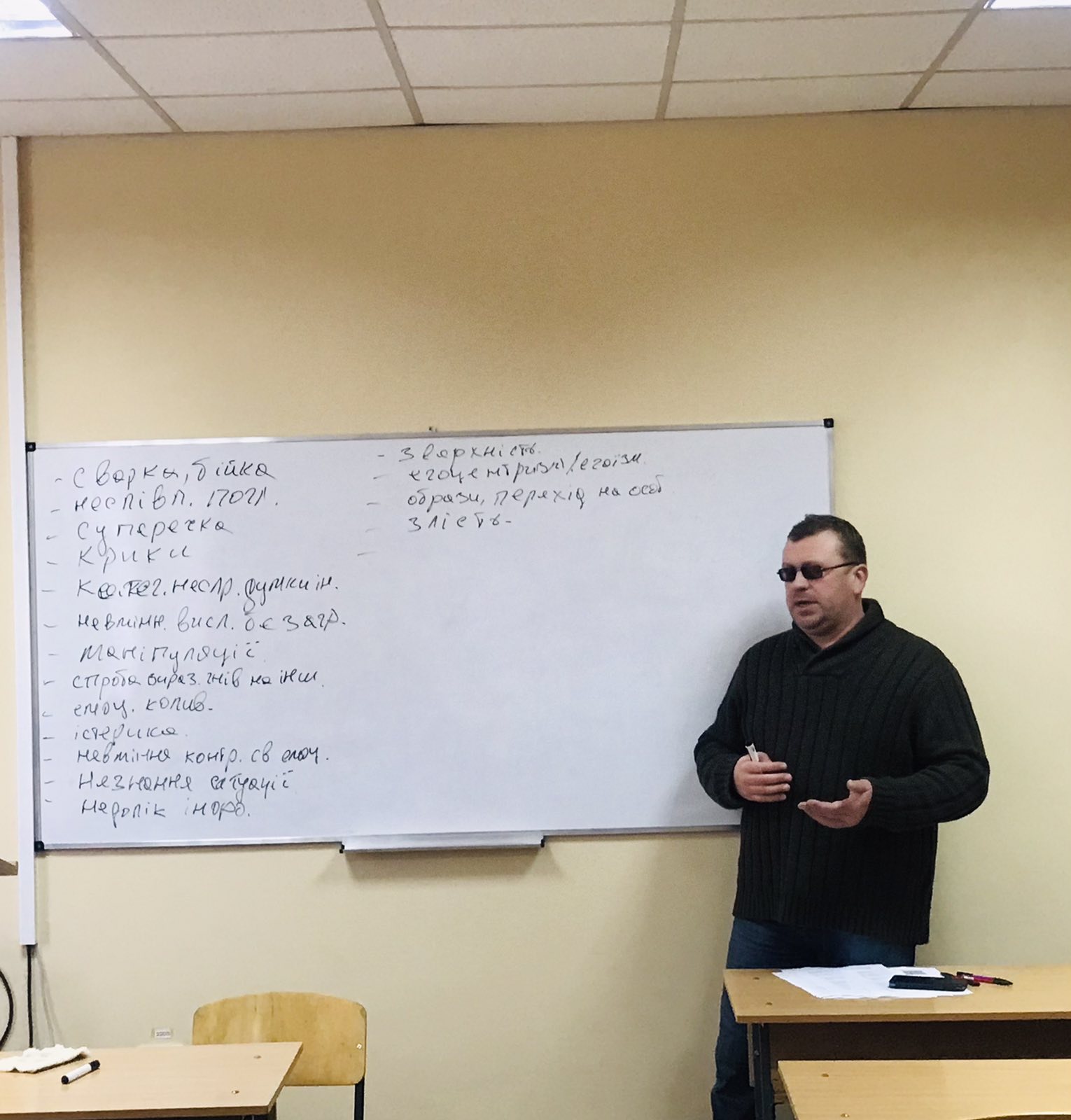 30 листопада 2022 року для студентів спеціальності «Право» в рамках «16 днів проти насильства» був проведений семінар «Конфлікт у нашому житті. Як відстояти себе і зберегти стосунки» практичним психологом, психотерапевтом Анатолієм Брунем. Під час семінару із студентами були розглянуті та обговорені наступні питання:
