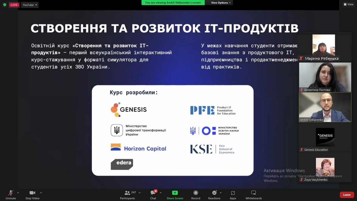 - ретроспектива запуску всеукраїнського курсу «Створення та розвиток IT продуктів»;