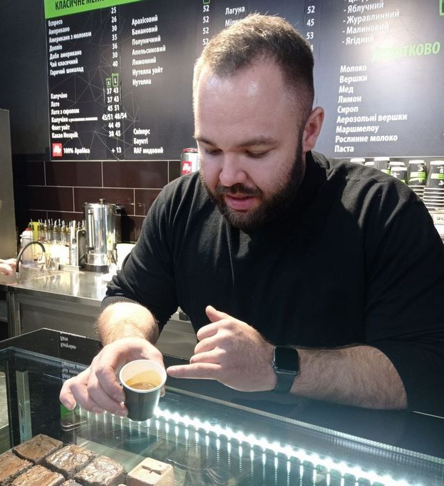 Назар показав учасникам заходу всі секрети приготування кави. Учасники майстер-класу мали можливість приготувати каву на власний смак з меню кав’ярні «BIGMAN COFFEE».